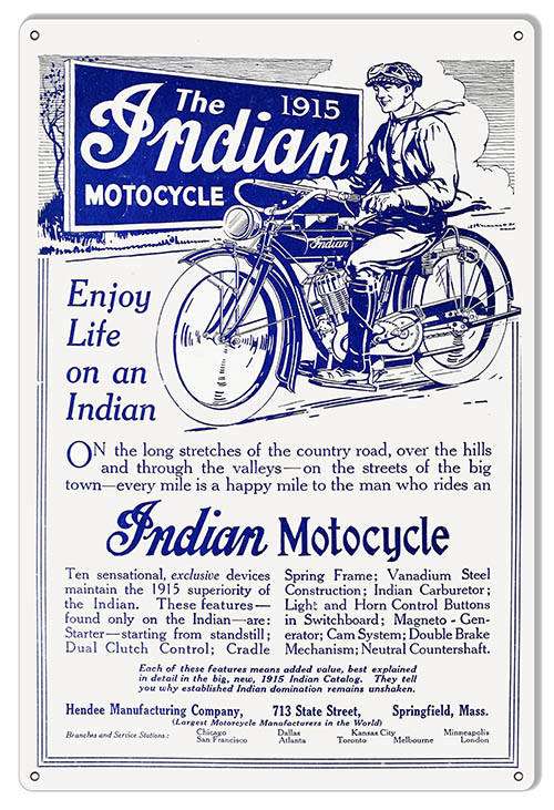 1915 Indian Motorcycle Advertisement Reproduction Metal Sign