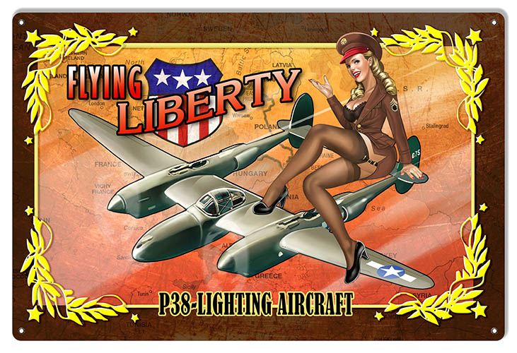 Airplane P38 Lightning Aircraft Pin Up Girl Aviation Metal Sign
