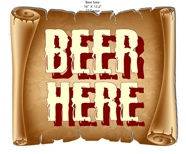 Beer Here Scroll Bar & Restaurant Reproduction Laser Cut Out Metal Sign 16x13.2 RVG1505S quantity