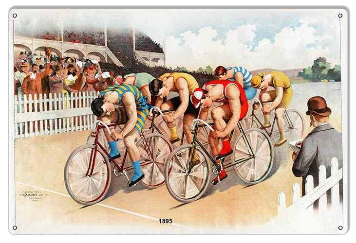 Bicycle Race Year 1895 Reproduction Garage Art Metal Sign 12×18