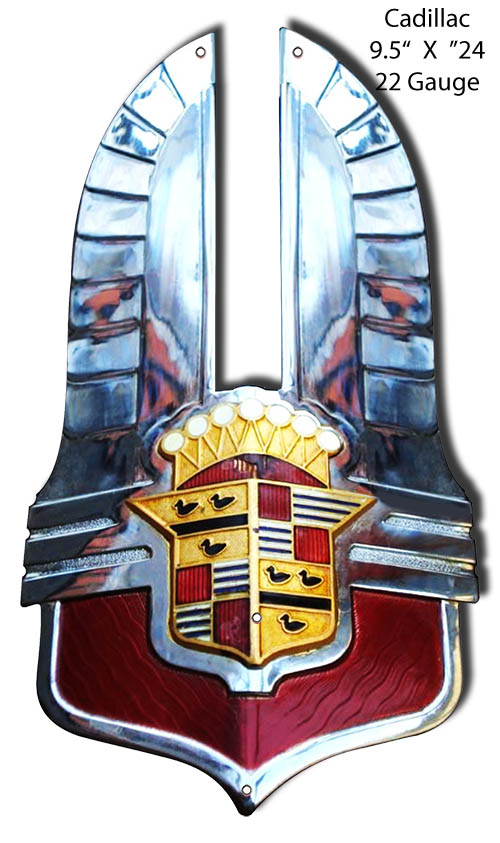 Cadillac Car Hood Ornament Cut Out Garage Art Metal Sign 9.5×16.5