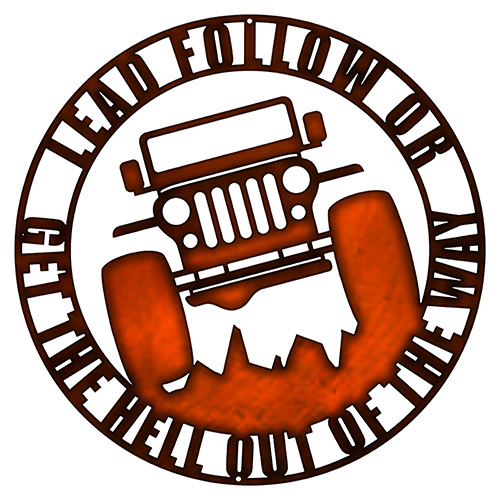 CJ2A Jeep Lead Follow Faux Copper Finish Metal Sign By Steve McDonald