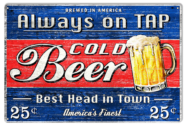 / Cold Beer On Tap Reproduction Bar Metal Sign