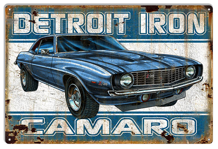 Detroit Iron Camaro Reproduction Hot Rod Metal Sign 12×18