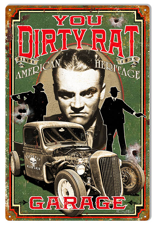 Dirty Rat Garage Hot Rod Man Cave Metal Sign