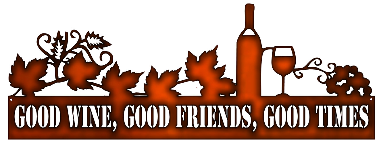 Good Wine, Friends,Times Cut Out Faux Copper Finish Metal Sign 9.8×23