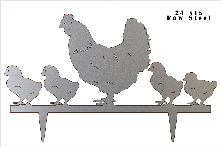 / Hen With Chickens Laser Cut Out Raw Steel Metal Sign 15×24