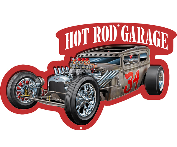 Hot Rod Garage Cut Out With 3D Effect Wall Art Metal Sign