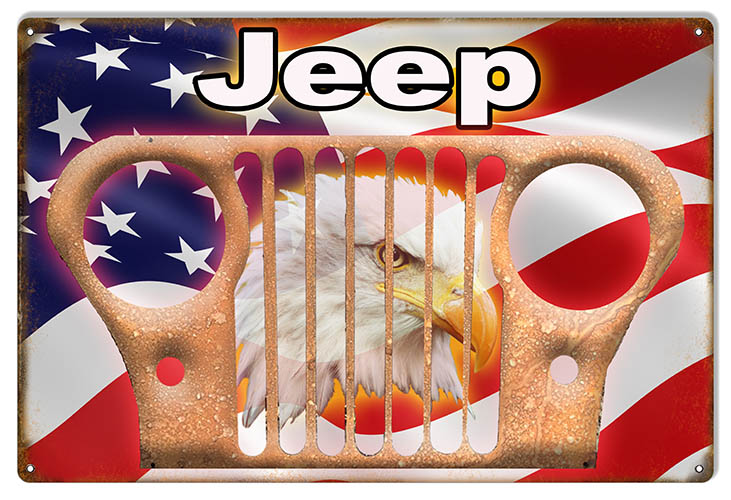 Jeep With Flag Reproduction Garage Shop Metal Sign