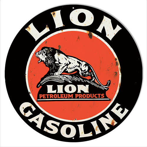 Lion Gasoline Reproduction Motor Oil Vintage Metal Sign 14×14 Round