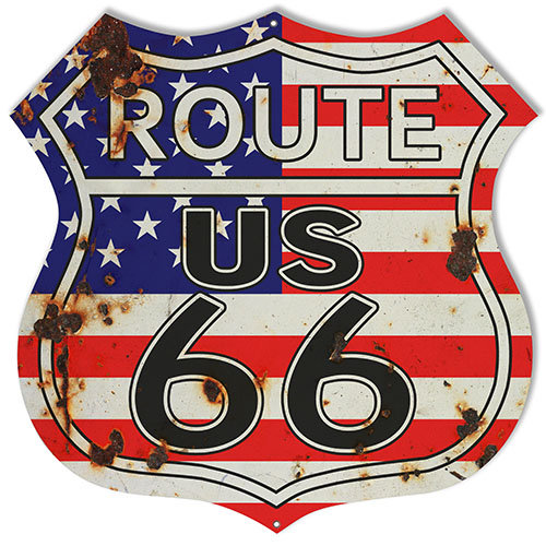 Reproduction Red White And Blue Route US 66 Sign 15×15