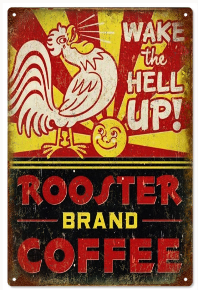 Reproduction Wake The Hell Up Coffee and Rooster Sign