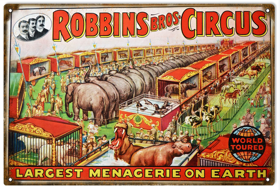 Robbins Bros Circus Largest Menagerie On Earth Sign.