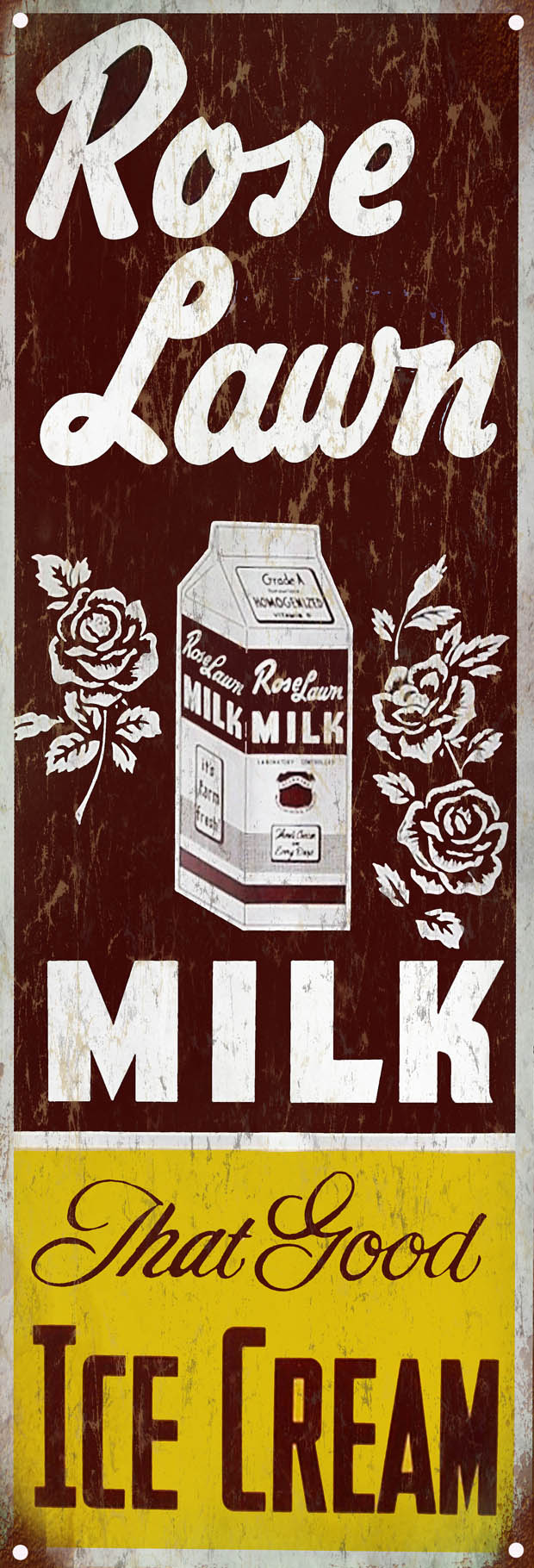 Rose Lawn Milk Ice Cream Country Kitchen Sign Reproduction 6×18