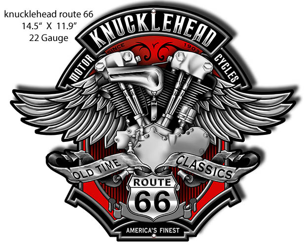 Route 66 Knucklehead Cut Out Metal Sign By Steve McDonald