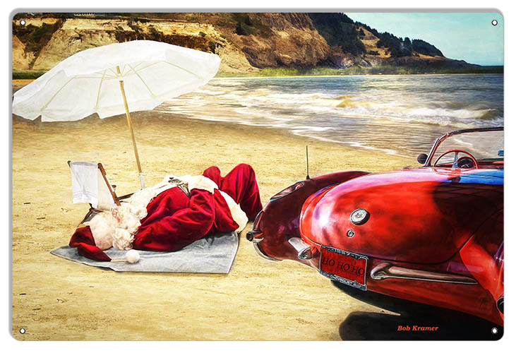 Santa Resting On The Beach Metal Christmas Holiday Sign By Artist Bob Kramer 12x18 RVG1845 quantity