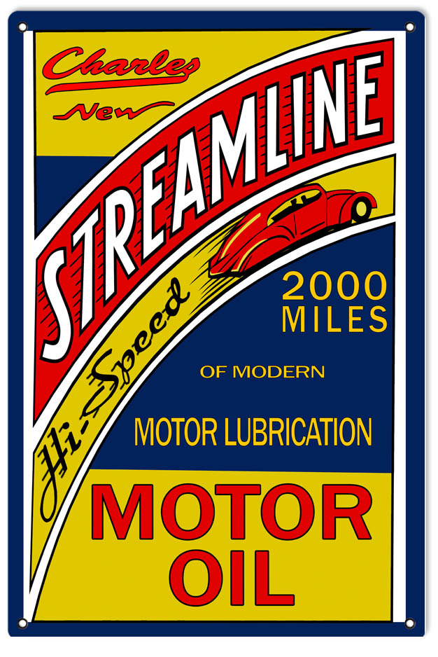 / Streamline Charles Motor Oil Reproduction Man Cave Metal Sign 18″x30″