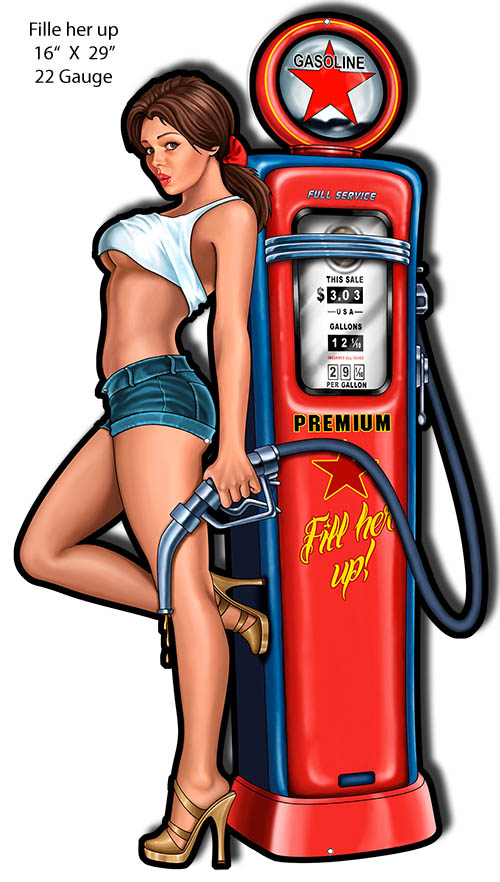 Texaco Pump Pin Up Girl Cut Out Metal Sign By Steve McDonald 16x29 quantity