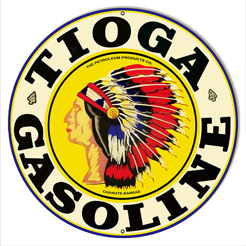 Tioga Gasoline Reproduction Motor Oil Metal Sign Round