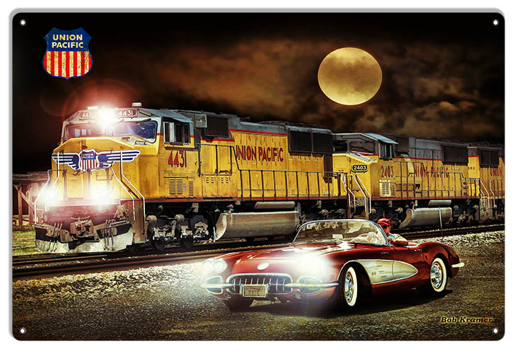 Union Pacific Railway Metal Sign Classic Corvette By Artist Bob Kramer 12×18 RVG1836