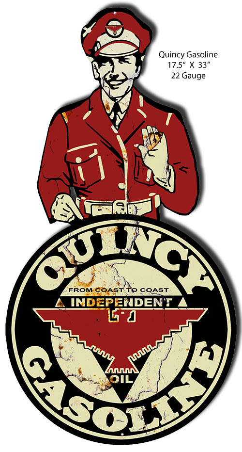 Vintage Quincy Gasoline Laser Cut Out Sign 17.5x33 quantity