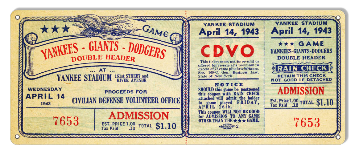 Yankee Giants Dodgers Ticket Reproduction Nostalgic Metal Sign